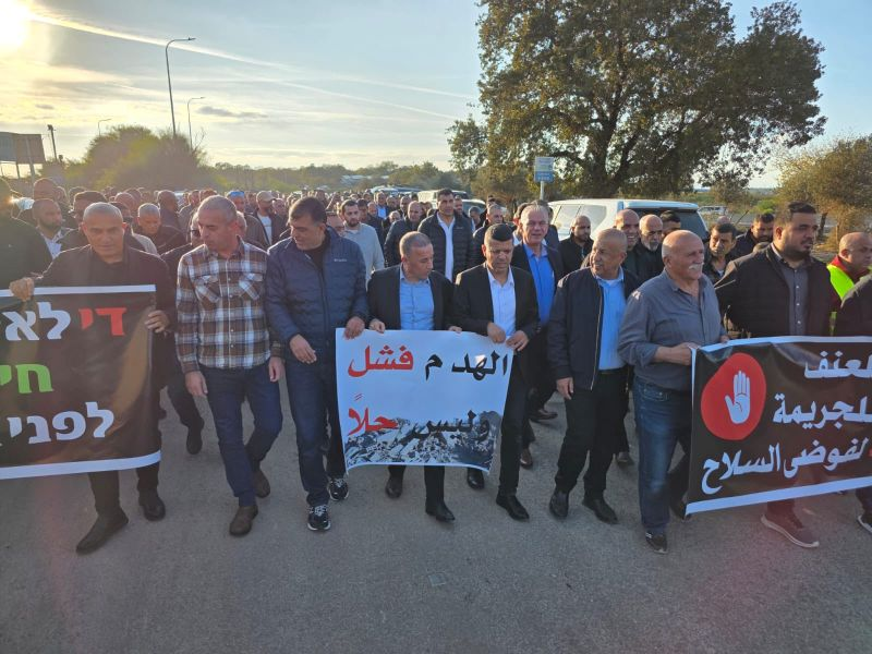 ورفع المشاركون في المظاهرة لافتات كُتب عليها: “لا لهدم البيوت العربية” و”البيت حق مش جريمة”، و”لا للعنف ..لا للجريمة.. لا لفوضى السلاح “.