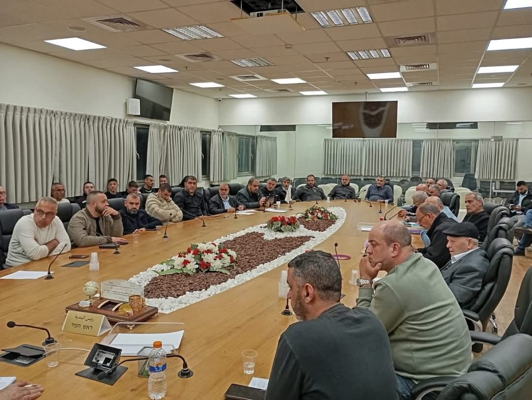 عقدت بلدية أم الفحم مساء اليوم الاثنين 16.2.2026 جلسة طارئة وموسعة برئاسة د. سمير صبحي، وبمشاركة أعضاء المجلس البلدي، اللجنة الشعبية، أعضاء المقر القطري لمناهضة الجريمة (المنبثق عن اللجنة القطرية ولجنة المتابعة)، ولجنة أولياء أمور الطلاب المحلية وناشطين.