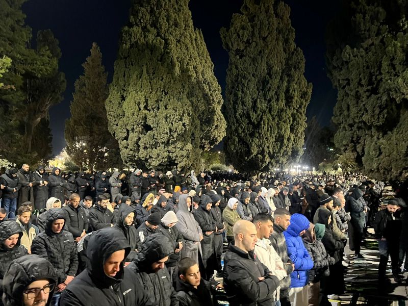 ولاحقًا، أدى عشرات آلاف المصلين مساء، الجمعة، صلاتي العشاء والتراويح في المسجد الأقصى المبارك بمدينة القدس الأقصى، في اليوم العاشر من شهر رمضان ورغم الإجراءات المشددة التي فرضها الاحتلال الإسرائيلي.