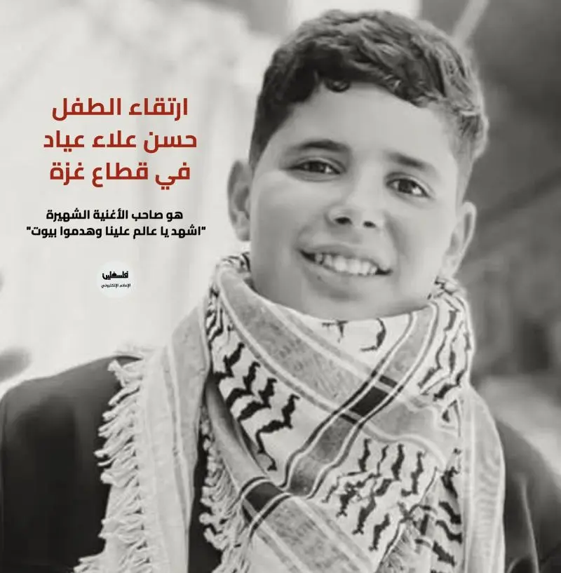 الصبي الغزاوي حسن علاء عياد (12 عامًا) أحب الغناء، وقد ساعده صوته الطفولي الجميل على حمل رسالة الحرب والخذلان، حيث قام بغناء “اشهد يا عالم” ولكن قام بتغيير كلماتها “اشهد يا عالم علينا.. وهدموا بيوت.. والعرب بنومة هنيّة …وإلى ما شاف بالغربال غزة تموت…أعمى بعيون أمريكيّة”!