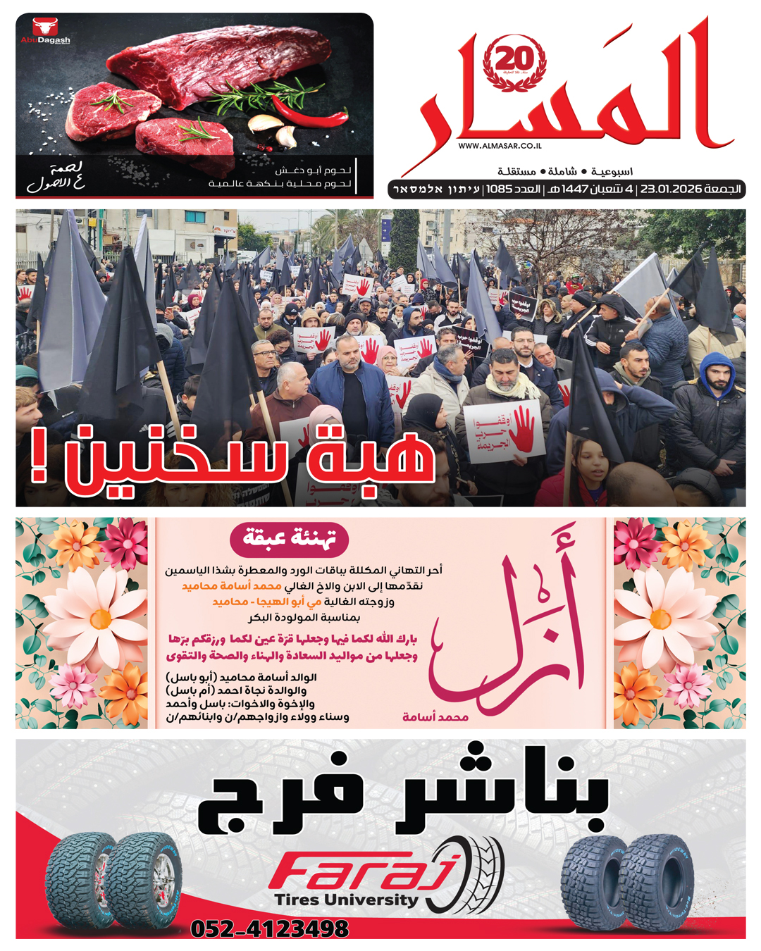 من المهم التنويه أن موقعنا يلتزم بالبند 27 أ من قانون الملكية الفكرية (סעיף 27א לחוק זכויות היוצרים). ويبذل قصارى جهده لتحديد أصحاب الحقوق في المواد المختلفة المنشورة لديه. وفي حال كانت لديكم اية ملاحظات تتعلق بحقوق الملكية، فيرجى الاتصال بنا للتوقف عن استخدامها عبر الخاص في هذه الصفحة او على ايميل: almasar@gmail.com