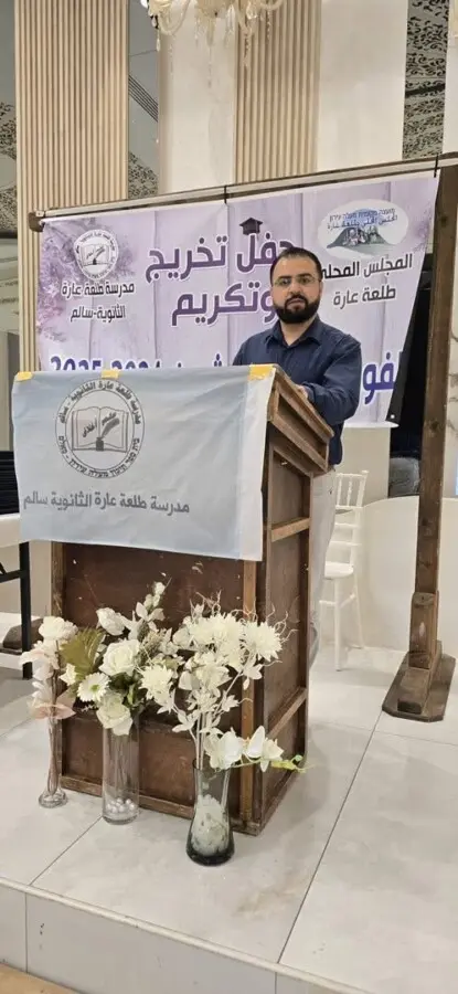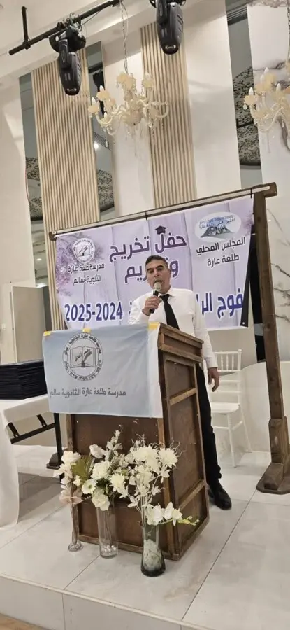 تلا ذلك كلمة رئيس المجلس المحلي، السيد محمد جلال إغبارية، الذي عبّر عن فخره بالخريجين، ووجّه تحية خاصة لحجاج طلعة عارة في الديار المقدسة متمنيًا لهم عودة سالمة، داعيًا الخريجين إلى أن يكونوا سفراء للخير والعطاء في مجتمعهم، وأن يسهموا في بناء طلعة عارة بسواعدهم البيضاء.