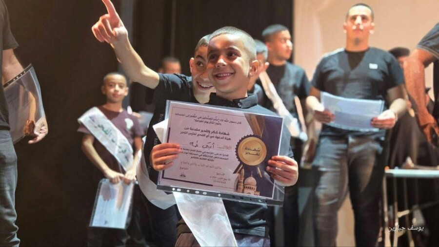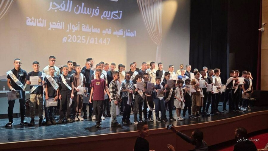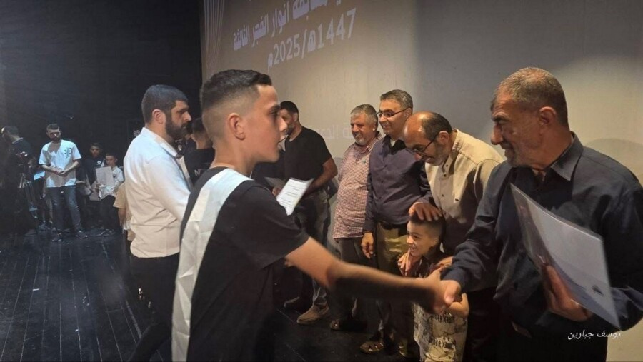 نظَّمت هيئةُ الدعوةِ في أمِّ الفحم أمسيةً حاشدةً لتكريمِ أكثرَ من 170 طالبًا شاركوا في مسابقةِ أنوارِ الفجرِ الثالثة للعام 1447هـ / 2025م، والتي أُقيمت خلال العطلةِ الصيفيّة الأخيرة، تنافس فيها الطلابُ في 11 مسجدًا في البلدة على المواظبةِ على صلاةِ الفجرِ جماعةً في المسجد.