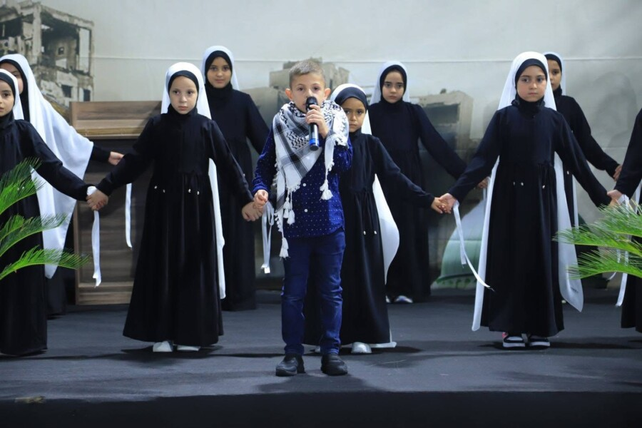 ومن ثمّ قدمت زهرات بصائر الخير فقرة فنيةً مميزةً على وقع انشودة عن رفض الظلم ومصير الظالمين تقدمهن الطفل حمزة أحمد برسائل الأمل من أطفال أم الفحم لاطفال غزة.