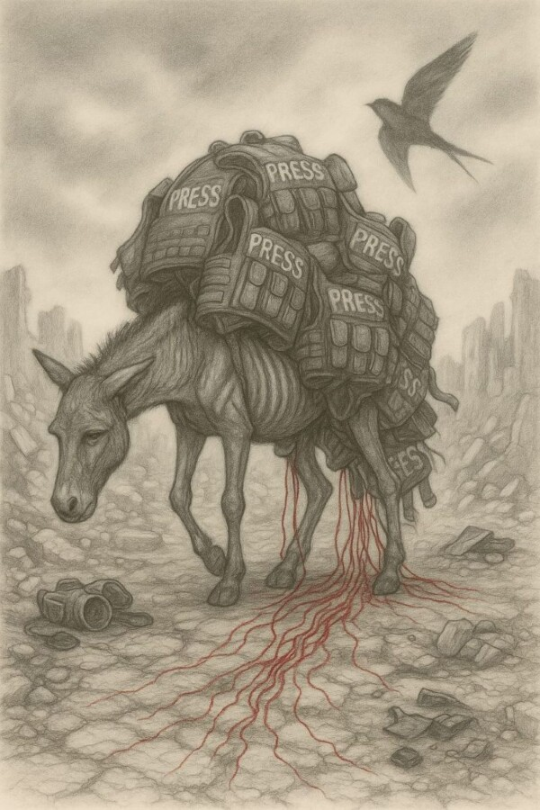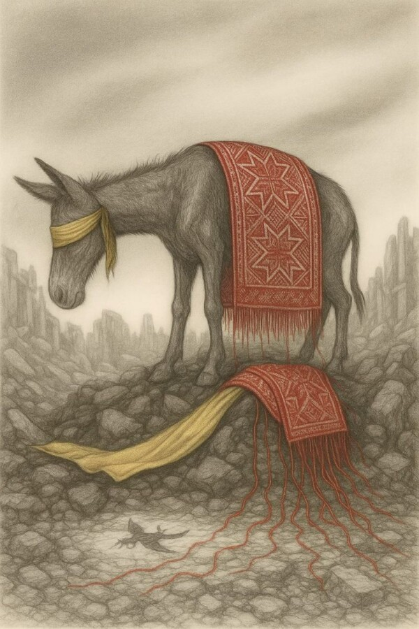 بهذا، تتجاوز الفنانة خطاب الضحية التقليدي، لتمنح الحمار حضورًا أخلاقيًا يوازي حضور القتلى، وكأنها تقول: “الصبر ليس خنوعًا، بل بطولة تُفضح عبر الاستمرار.”