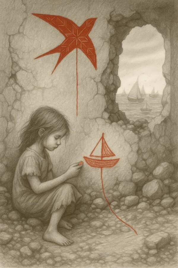 إن الأرض التي دمرتها الحرب لا تسمح بوقوف الظلال شامخة؛ فالشموخ يفترض ثباتًا ومكانًا، بينما الخراب لا يترك سوى فراغ متشظٍ. الظل، الذي عادة ما يكون شاهدًا صامتًا على الفعل الإنساني، يستحي من أن يطلّ كي لا يضطر لأن يكون شاهداً على الدماء التي نزفت، وعلى الخراب الذي غلّف المكان بلون رمادي قاتم. وكأن الفنّانة قررت أن تسحب شهادة الظل من المشهد، فلا مراقبة ولا تسجيل، بل انقطاع عن الأثر.