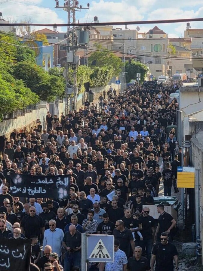 وتجمع الآلاف من الأهالي والناشطين عند دوار الشهداء قبيل انطلاق المسيرة وبدء مراسم إحياء الذكرى الـ69 لمجزرة كفر قاسم.