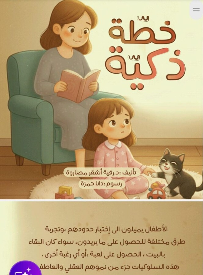 وكذلك كتاب “تقييم أثر وعي النساء الارامل على الوحدة النفسية من وجهة نظرهن”. إضافة لقصة للأطفال بعنوان “خطة ذكية”.