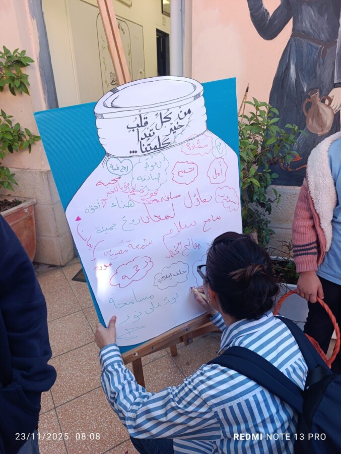 وتضمن اليوم سلسلة من الورشات الصفية والأنشطة القيَمية التي قادها المربّون والمعلمون في جميع الصفوف، إلى جانب عرض فيلم توعوي حول السياقة الخطرة للتركتورونات على شاشة كبيرة في ملعب المدرسة، بهدف رفع الوعي المروري لدى الطلاب وغرس السلوك الآمن والمسؤول في الشارع.
