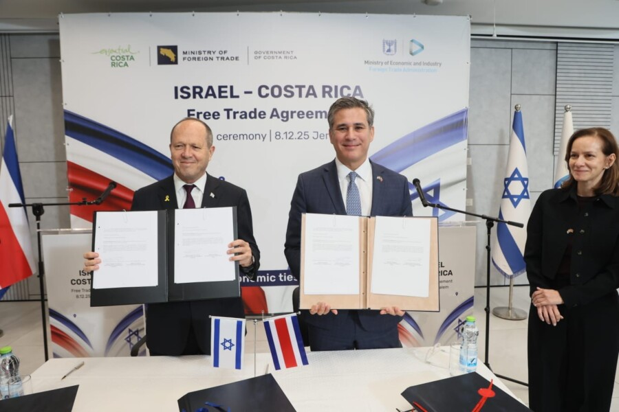 وقّعت إسرائيل وكوستاريكا اليوم اتفاقية شاملة للتجارة الحرّة، تُلغي فوراً أكثر من 90% من الرسوم الجمركية بين البلدين، وتفتح الباب أمام توسيع واسع للتبادل التجاري في السلع والخدمات. ويُتوقّع أن تسهم الاتفاقية في تعزيز الصادرات الإسرائيلية وخفض تكاليف الاستيراد، بما ينعكس على أسعار المنتجات للمستهلكين.