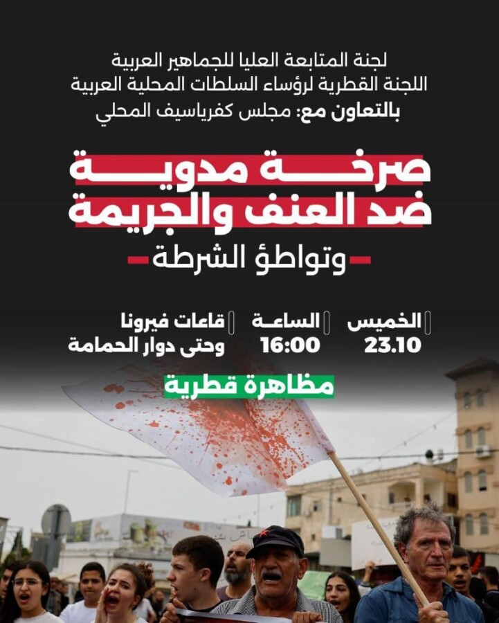 المتابعة تدعو لأوسع مشاركة في مظاهرة كفرياسيف القطرية غدًا الخميس ردًا على استفحال الجريمة