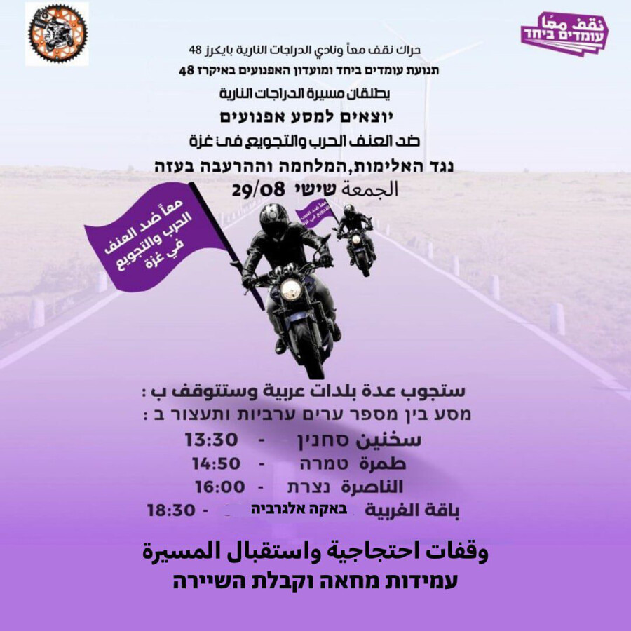 حراك “نقف معًا” ونادي “بايكرز 48” يطلقان مسيرة دراجات نارية ووقفات احتجاجية ضد الحرب والعنف والجريمة