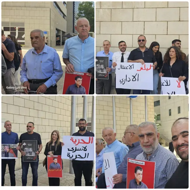 وقفة احتجاجية امام محكمة حيفا رفضًا للاعتقال الإداري للقيادي رجا إغبارية بمشاركة لفيف من الناشطين السياسيين