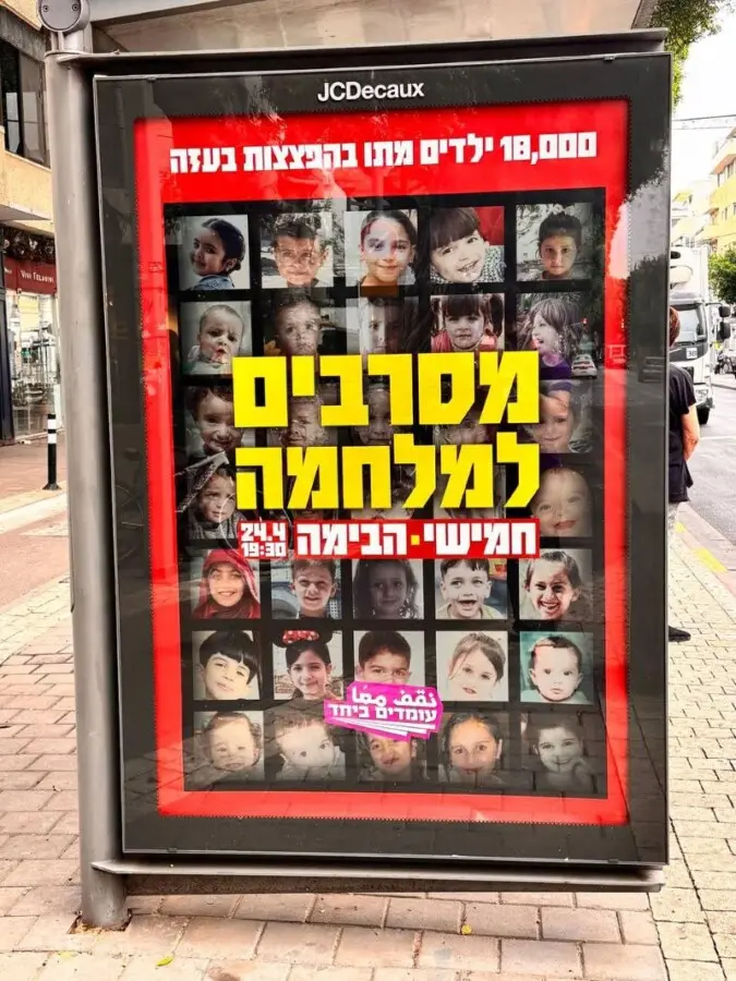 تل أبيب تستيقظ على صور أطفال غزة ضمن حملة “نقف معًا” ردًا على قرار الشرطة منع رفع صورهم بالمظاهرات