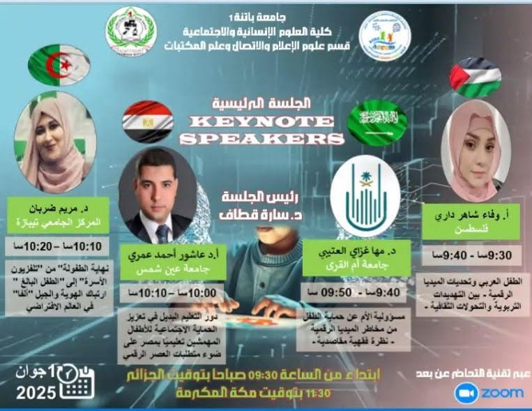 الأديبة وفاء داري تُمثّل فلسطين في الملتقى العلمي الدولي الأول حول الطفل والميديا الرقمية بجامعة باتنة 1 – الجزائر
