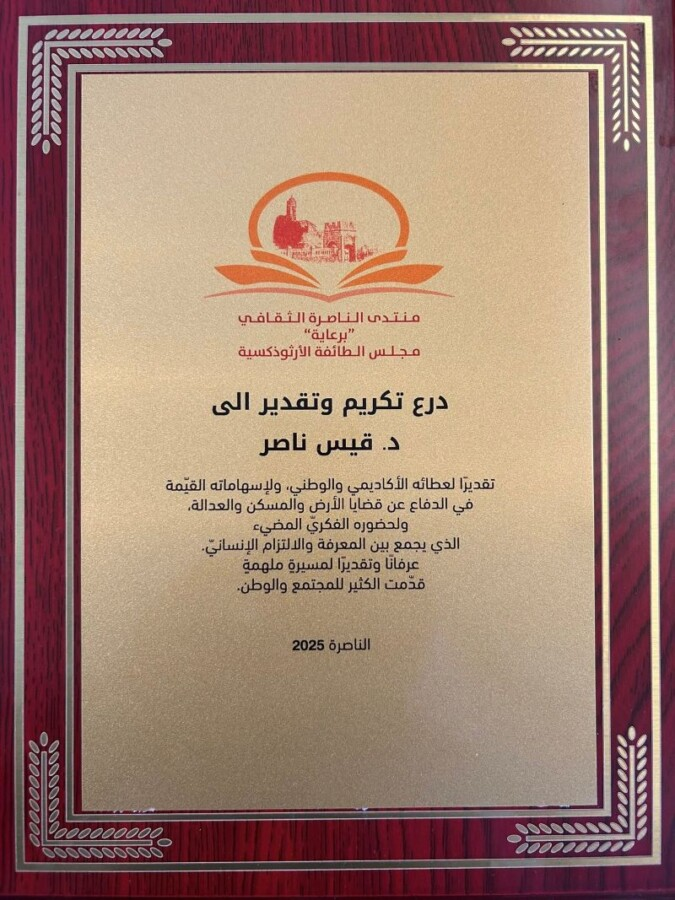 كتب المحامي د. قيس ناصر، محاضر للحقوق ورئيس قسم التنظيم والبناء، مكتب فيرون- حيفا، على صفحته قائلًا: “تشرفت يوم امس…